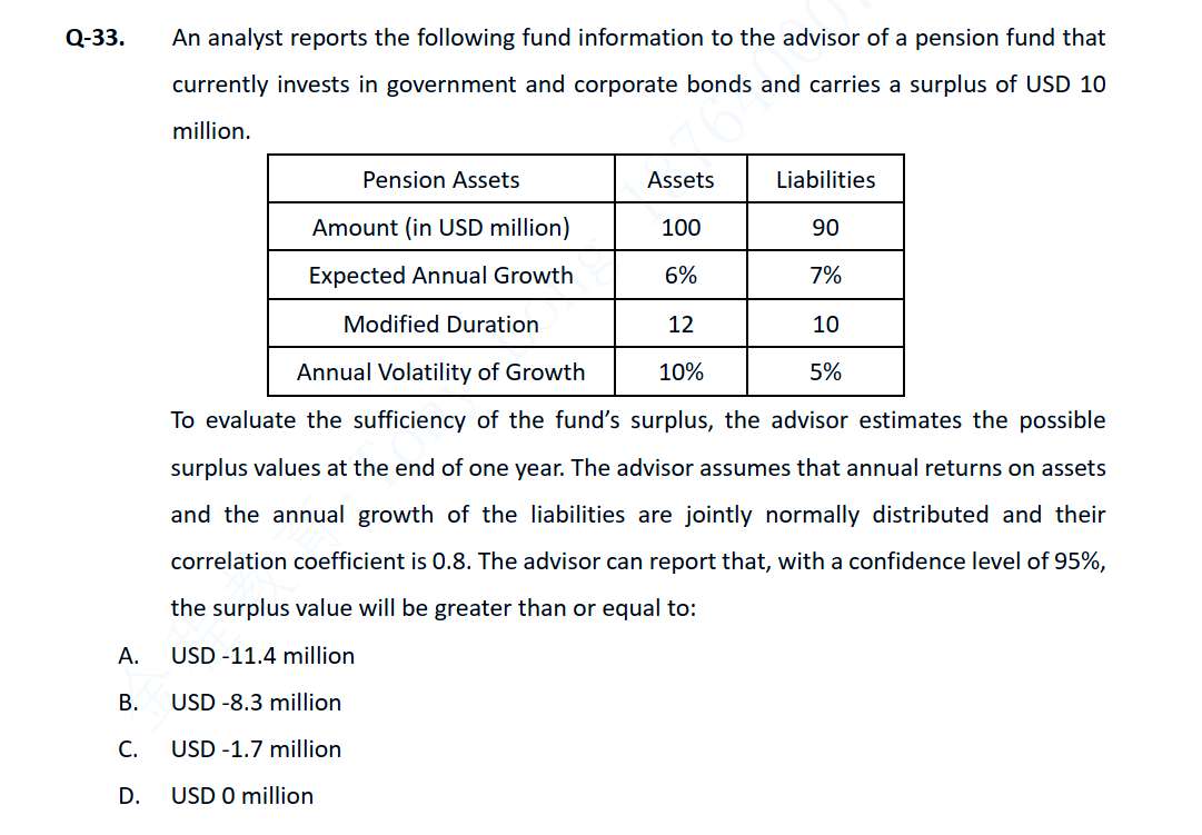 学员你好,久期是干扰项,因为题目没有问到surplus变成了多少。久期的目的是为了求解资产和负债的变化,进而得到surplus的变化,然后去预估surplus最新的值。