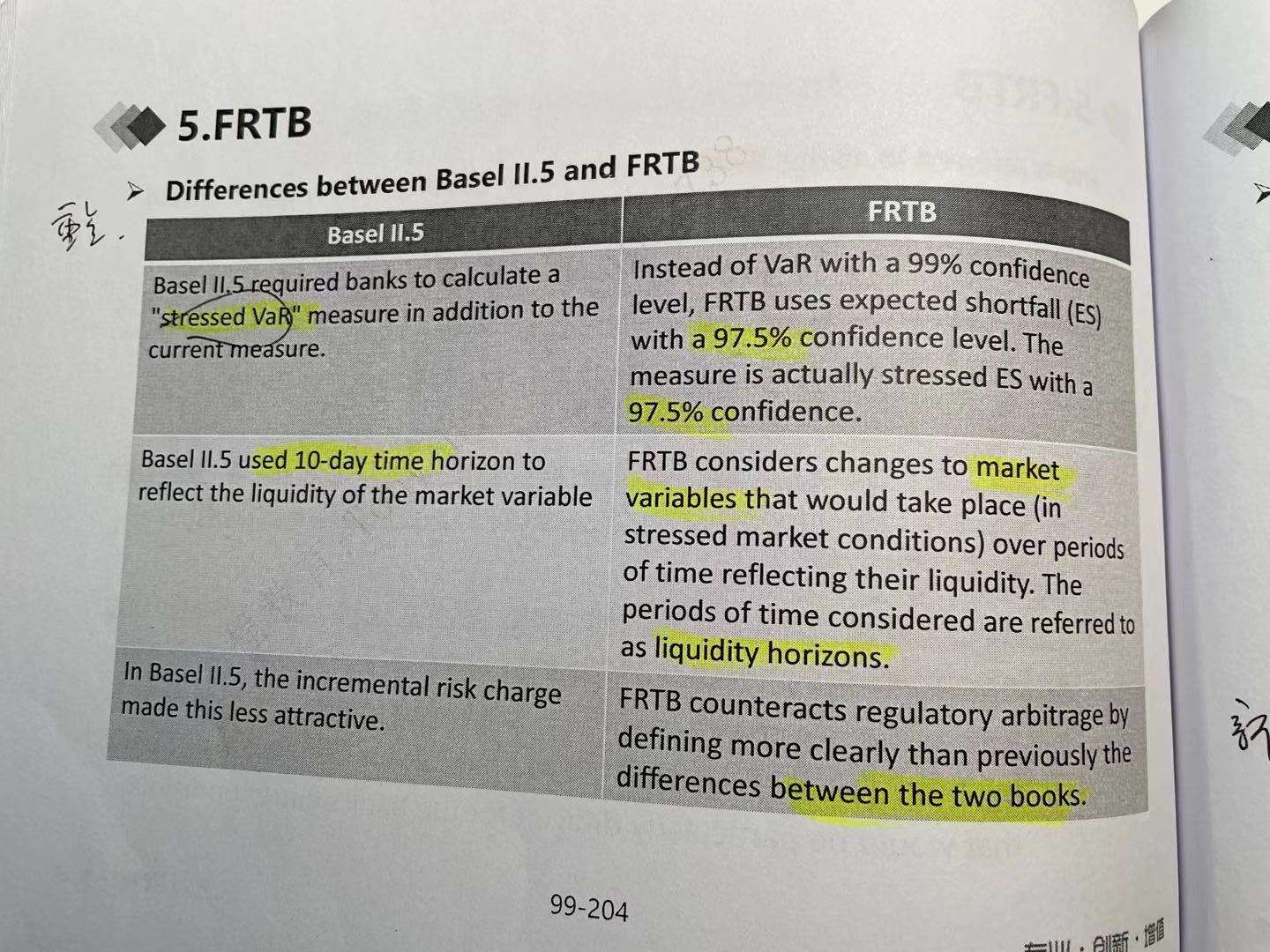 你自己都拍了这些照片,还没搞清楚?我再说一遍,FRTB是basel III下的规定,第二张照片都已经明白无误地讲basel 2.5和FRTB进行比较了。