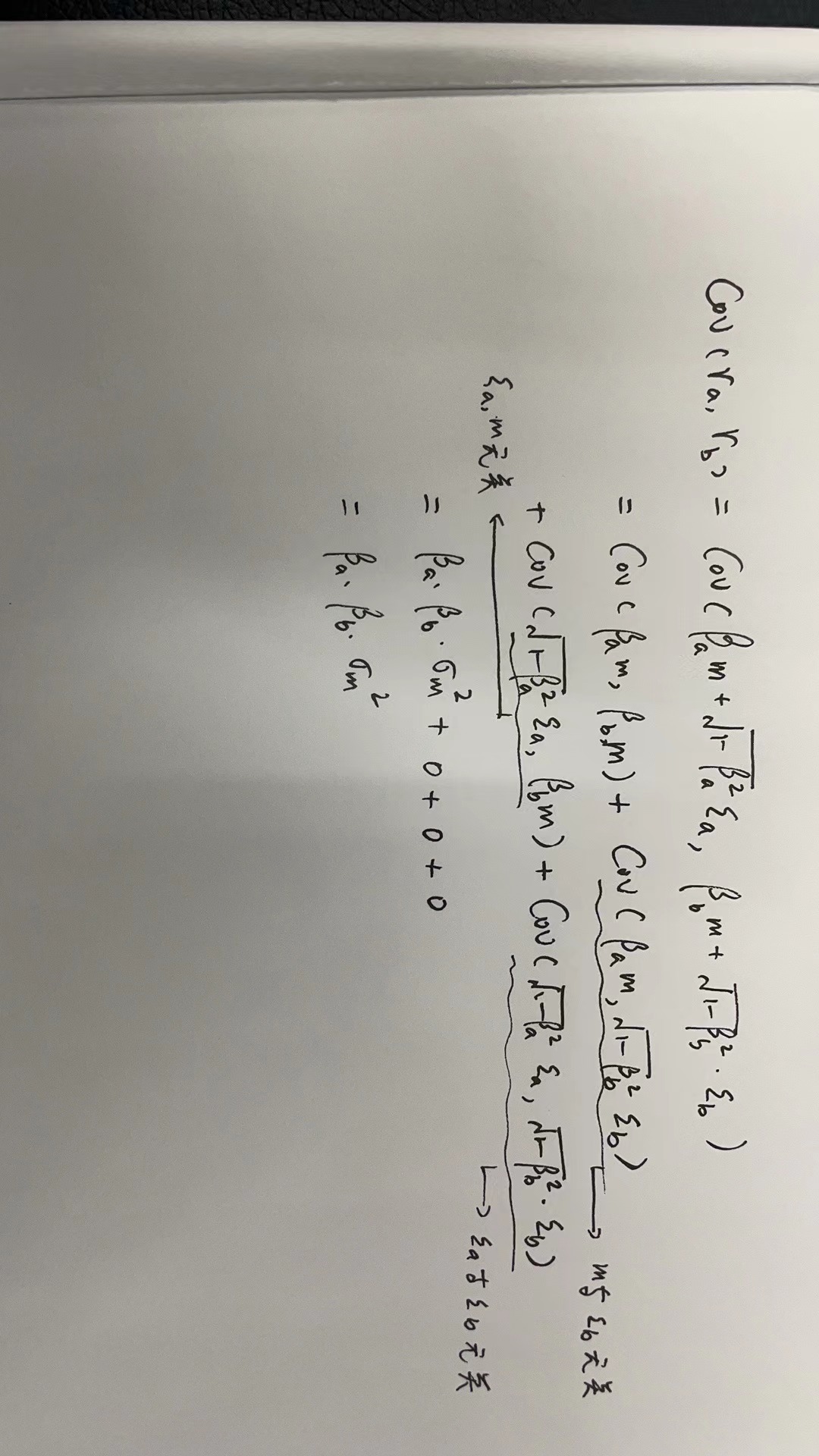 最后一步cov(ra,rb)是怎么推导出来的?