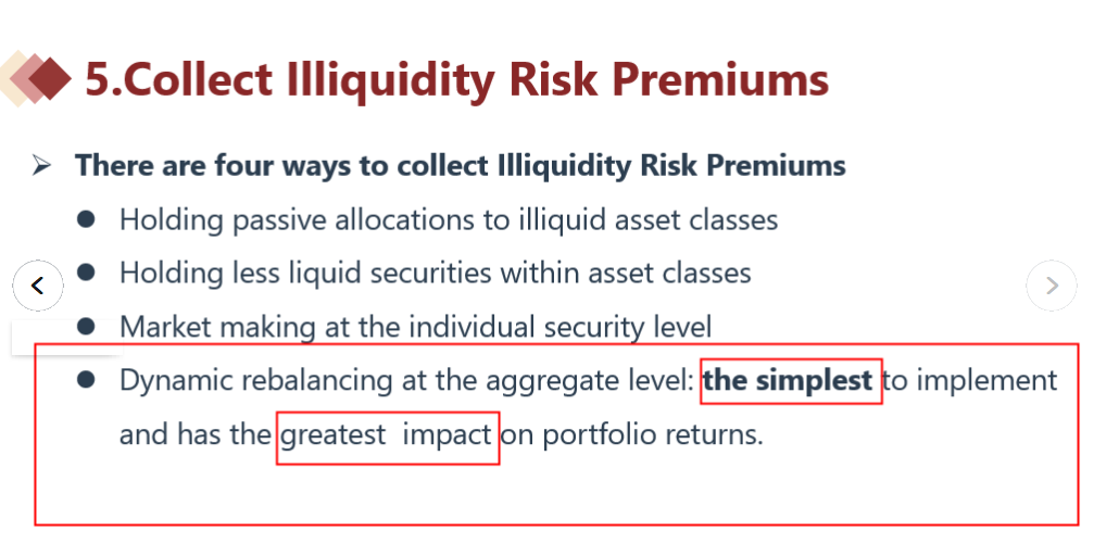 同学你好,这个我们上课有讲过,dynamic rebalancing,这个才是用最简单的方法得到对收益最大的影响。