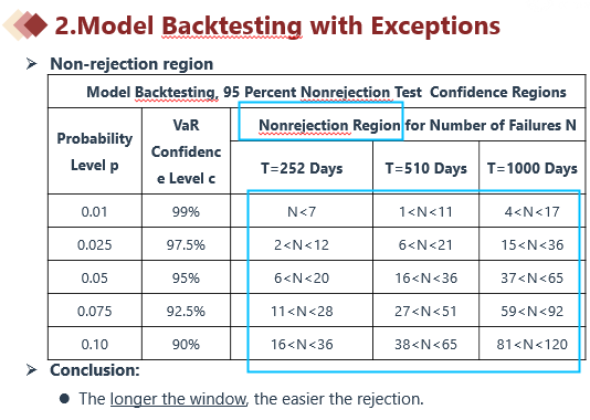 同学你好,这里你带入4算出来的确实是落在非拒绝域的,但是选项说的是cutoff,(inclusive of the acceptance region) 意思是接受域也就是下图中的非拒绝域,我们可以计算一下当有2个exception时的检验结果是(2-250*3%)/根号下(250*3%*97%)=-2.03<2.33是不拒绝的,所以从2个exception开始就在这个非拒绝域中。(4也落在拒绝域,但不是第一个落入拒绝域里面的。)