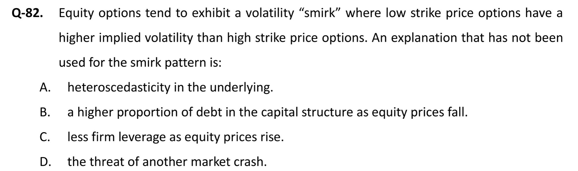 其中,微笑曲线上方较高的部分被称为波动率微笑中的“smirk”,这是因为它通常是由市场上对未来风险的担忧引起的。投资者可能会对未来的不确定性存在担忧,并因此愿意支付更高的溢价来购买更远期的保护。因此,在市场上,较远离当前股票价格的看涨期权的隐含波动率普遍较高。