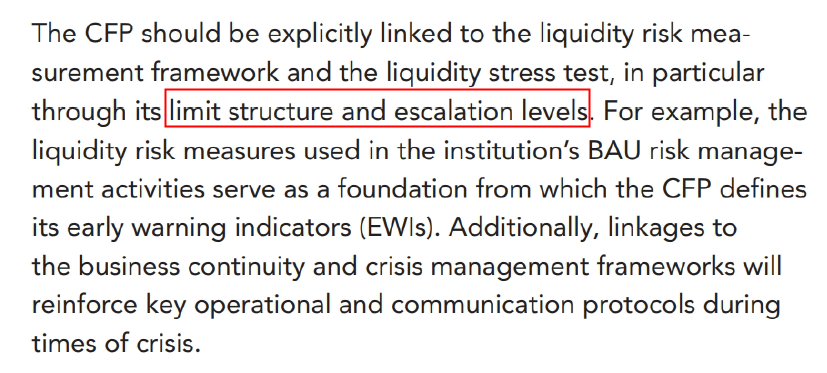 同学你好,这里原版书有提及这个知识点、A说的是沟通计划,C说的是融资来源集中度以及非核心融资。D说的是金融部门盈利趋势等行业因素。这三个文章中对于CFP都没有提及。只有B是对的。