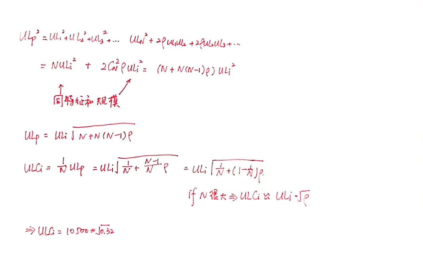 这里采用的是一个在包含大量同特征贷款的信贷组合中近似计算UL的方法,公式是根据课上讲到的一些标准公式推导而来,讲义中并没有。公式的推导详见附图。