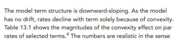 同学你好,这里长期利率呈现下降的趋势是一个实证结论了,我们把它记下来就好。下图也表现出凸性对于model1长期利率下降的表现的影响。
