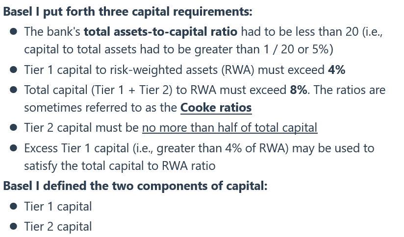 同学你好,这里的点比较细了,讲义里面提到的位置在这里。BaselⅠ中要求1级资本占总资本的一半(至少一半,超过4%)二级资本不超过总资本的一半,也是这个意思。