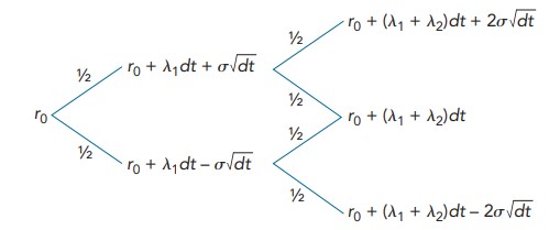 同学你好。根据Ho-Lee model的二叉树展开如图1中所示。以最上方的分支为例,见图2计算。