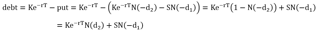 老师,这里是怎么由Debt=ke-rt -put以及put公式推导出debt的最后公式的?