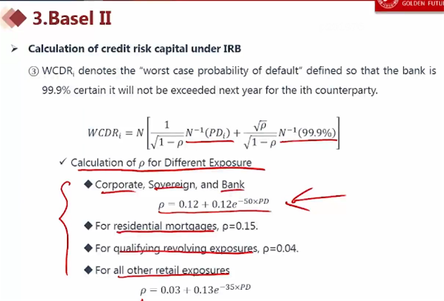 请问老师B选项具体是怎么算的?还有,IRB信用风险的时候the worst case default rate, WCDR怎么算的,怎么涉及到的相关性