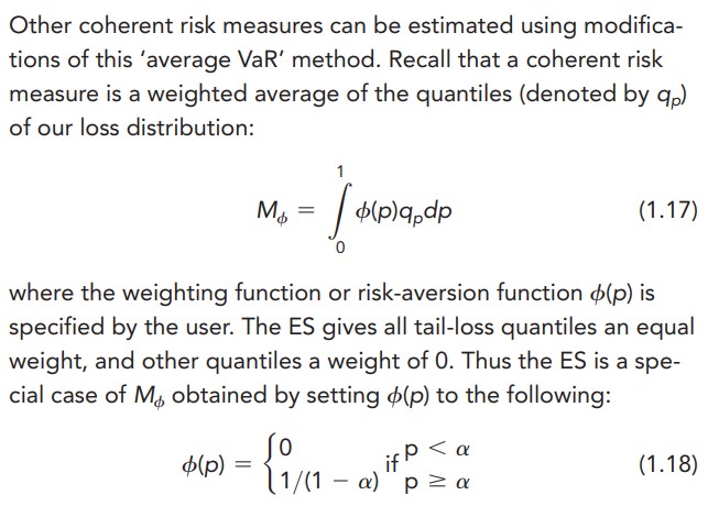 同学您好。没有问题的,满足四大性质的谱风险度量是一致性风险度量,所以一致性风险度量本身也是给损失分布中各个分位点予以权重(且该权重可以取0、可以加总后不为1)。