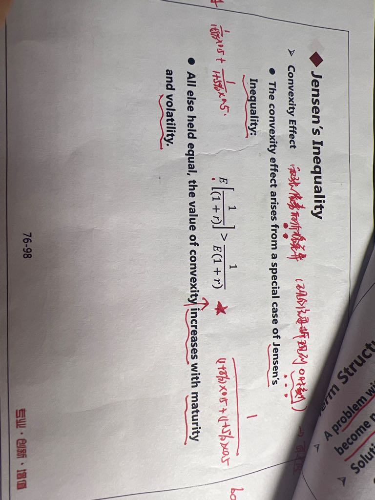 请问老师,jasen 不等式中,凸性上升,为什么提高久期和波动率