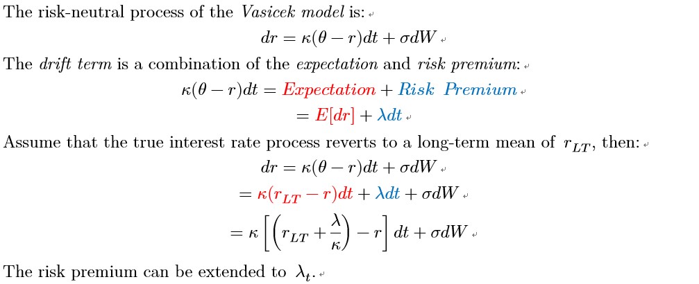 同学你好。什么时候是constant取决于模型使用者的意愿与目的,若drift是时变的那么这种模型一般是用于匹配当前市场上的利率期限结构的(即arbitrage-free model)。使用arbitrage-free model主要是用于给流动性差的产品定价、对冲等;若drift不是时变的那么还是符合传统的Vasicek model,是均衡模型,这个一般是用于relative value trading的。这里的数学上的表达见下图。