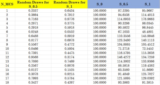 给定股票价格分布的假设以及随机数的发射,我们接下来就可以进行股票价格模拟、获得成千上万个未来的股票价格。图3中即以每半年为一期,模拟出了大量未来一年后的股票价格(注意在Excel中,随机数的发射需要按照两步走的方法,先随机发射标准连续均匀分布随机变量,即第二列和第三列,再通过CDF的反函数生成标准随机变量)。通过和历史模拟法一样的方法就可以从模拟分布中选出VaR值了。