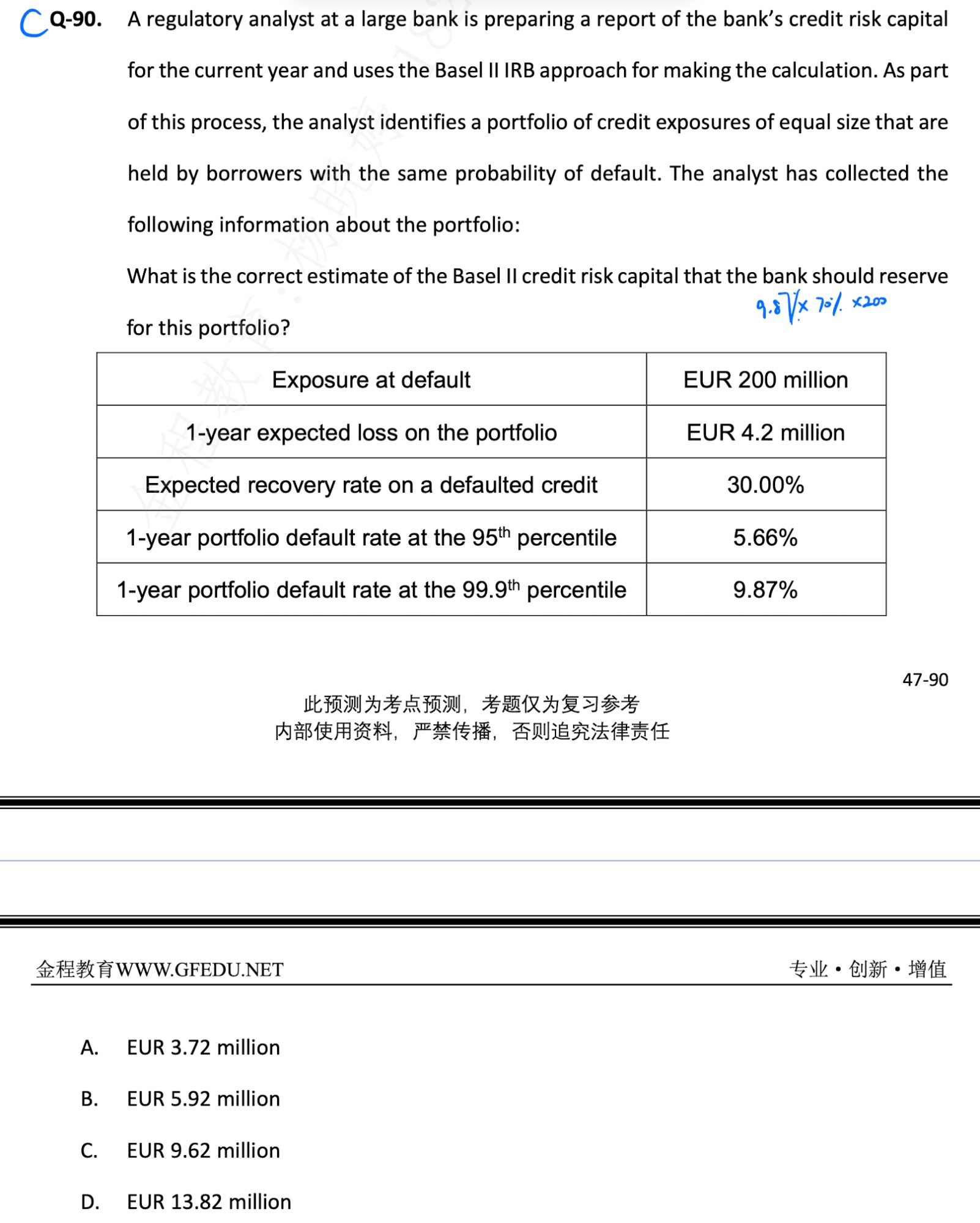 同学你好,这里我看了看解析里面说的0.04相关性,就是针对零售信用卡之间的违约相关性,你可以看看下图公式有提到这个(信用卡就是属于循环结构的)。