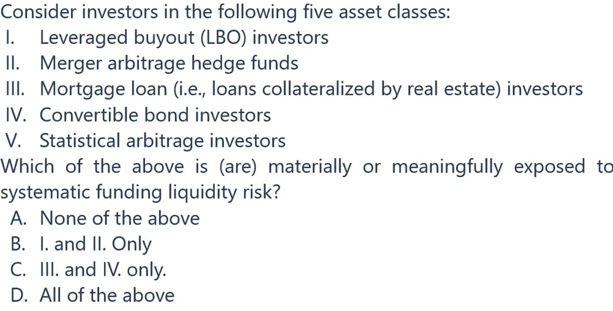 同学你好,这上面提问的liquidity transfermation和credit transferamtion是跟举杠杆没有关系的。但是5个选项,这是借钱的途径呀,借钱肯定就是举杠杆了,借钱肯定会存在融资流动性风险的。