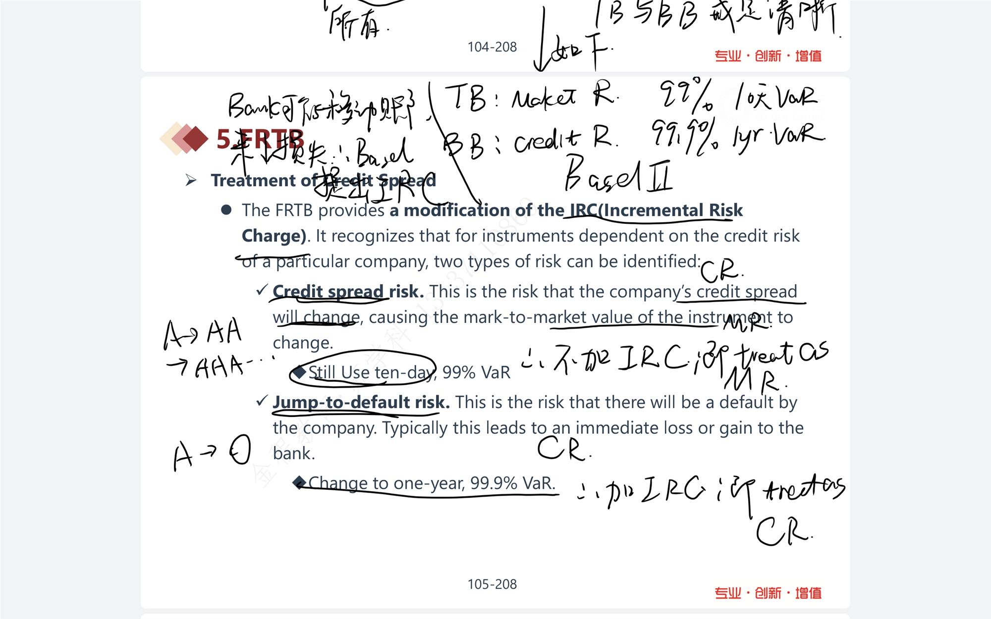 谢谢老师,这里对于IRC的规定,跟Basel的有什么区别呢?basel的IRC就是对trading book中跟信用风险有关的部分额外计提对吧,那FRTB为什么又要细分两种情况呢?