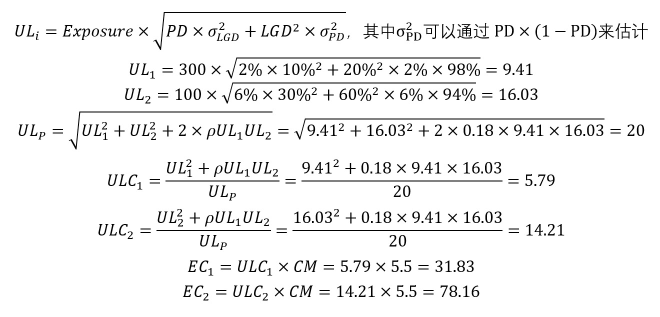 这道题问的是两笔交易各自的经济资本,也就是需要计算单笔交易的ULC,然后乘以CM来进行估计。具体计算见附图。