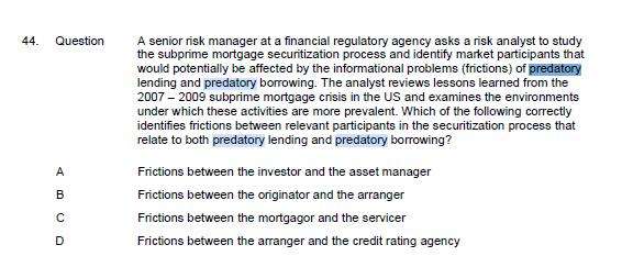 你的感觉是对的,这道题题目本身是有问题的,根据定义predatory lending和predatory borrowing只会出现在借贷关系中。