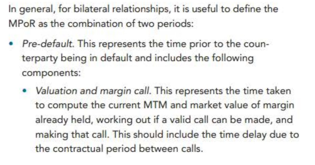 根据定义,MPoR指交易对手停止提供保证金/抵押品与所有基础交易成功结清、替换或以其他方式对冲之间的有效时间。详细包含内容见附图。