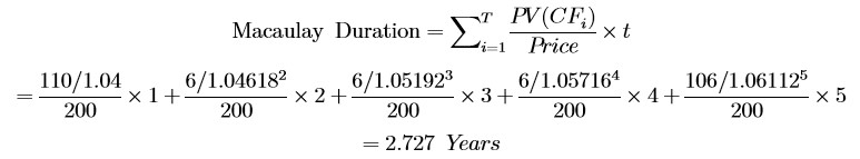 麦考林久期2.73是怎么计算的?一级的知识忘记了