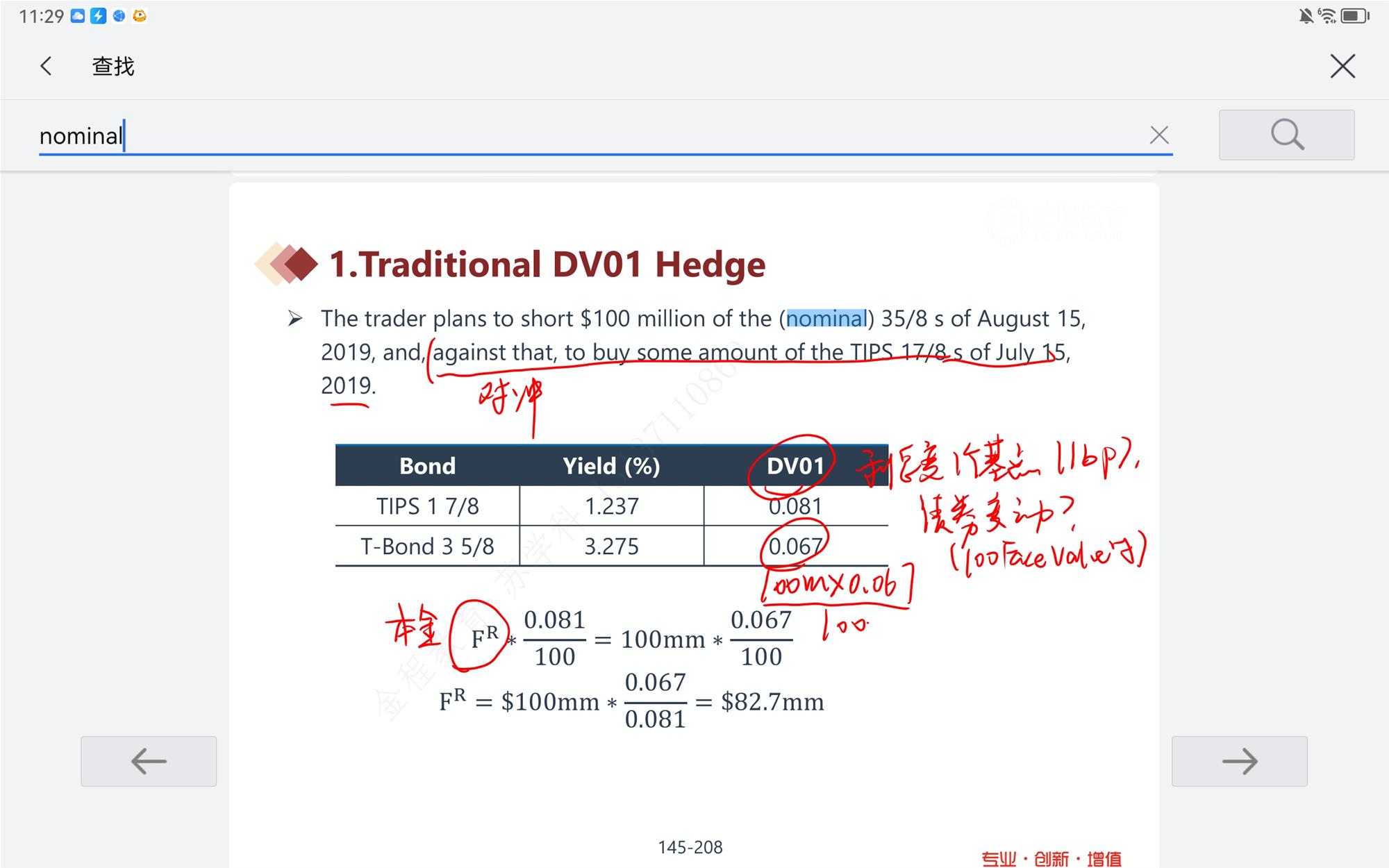 就是一开始交易员按照最初的比例进行匹配(89.8和100),进行风险对冲,那么他的目的是不是要使得整体风险中性?也就是说,做多一笔做空一笔,正好使得总体的风险为中性,即,使得整体的资产组合不随着利率的变动而变动。