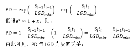 公式中括号内为违约概率的估计公式。反向变化可以通过求导来进行分析。但是这边的求导相对复杂,所以我们可以通过近似方法来分析。详见附图。