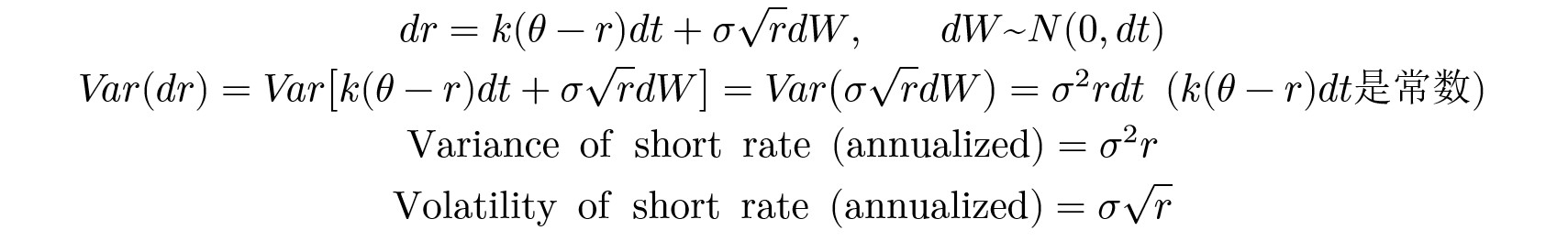 同学你好。短期利率的波动率就是basis point volatility,见下图。CIR模型中短期利率的波动率是与根号下r成比例的。Sigma在CIR这类波动率与利率成比例的模型中一般被称为yield volatility。