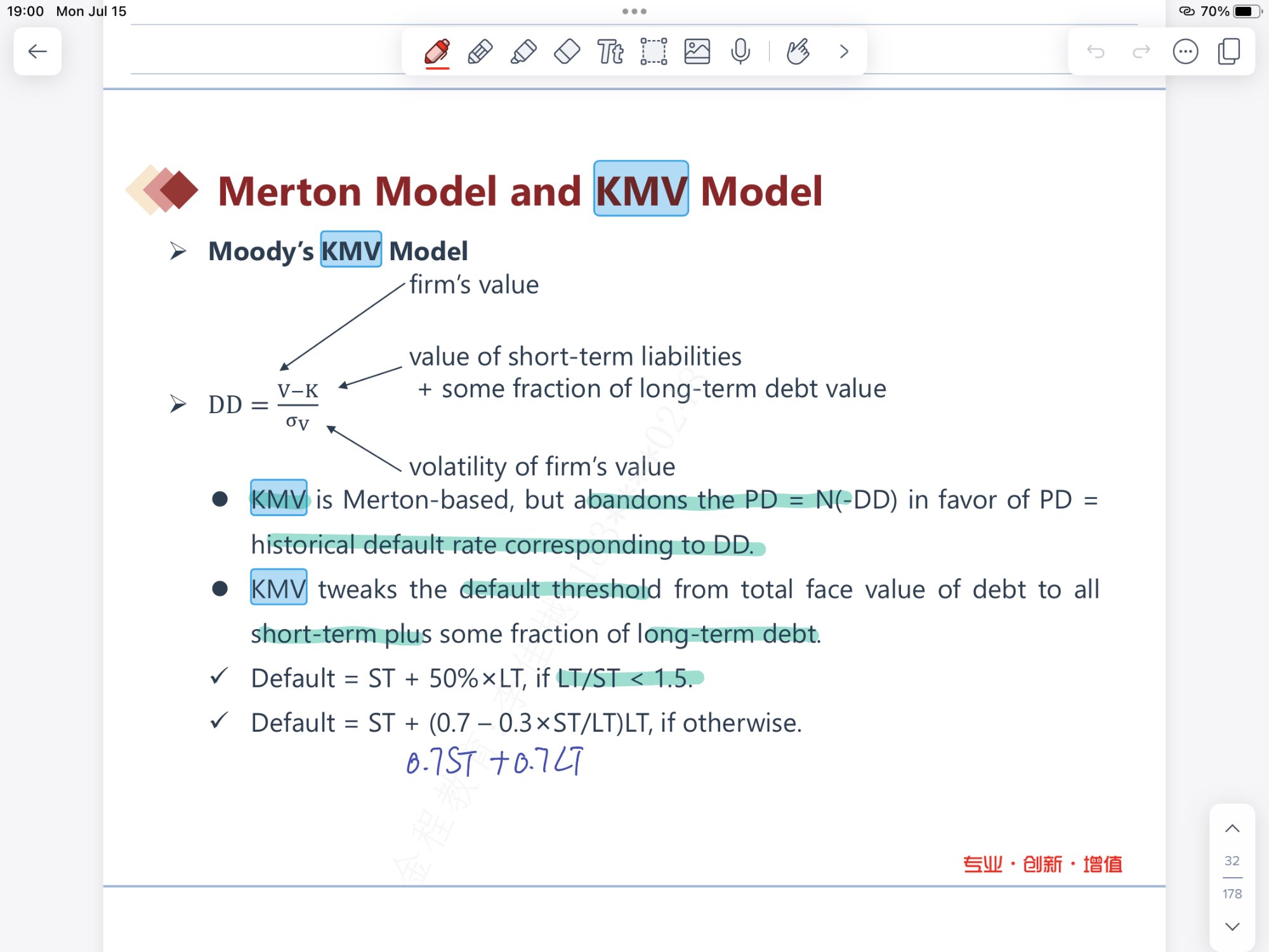 Normalized distance to default using KMV model, 为什么是用dd/v?