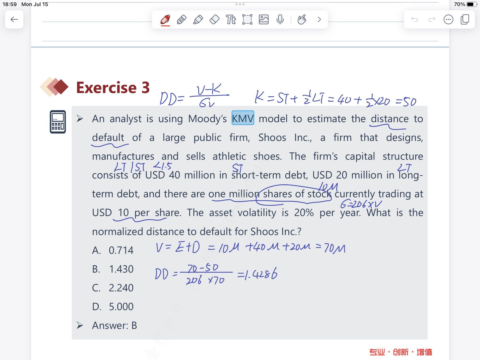 DD是distance to default, V是value. 我在做别的题目的时候即使没有说normalized distance只要提了kmv就是要除以value,并不是讲义里最原始的公式,可以解释一下原因吗?