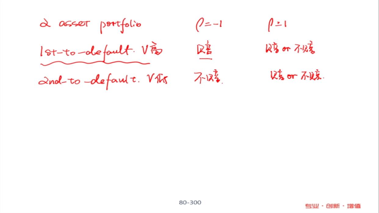 请问。first-to-default的价值曲线和second的价值曲线,当相关系数为1的时候,曲线一定是交于同一个点的吗,老师你的图画出来最后交于同一个点。