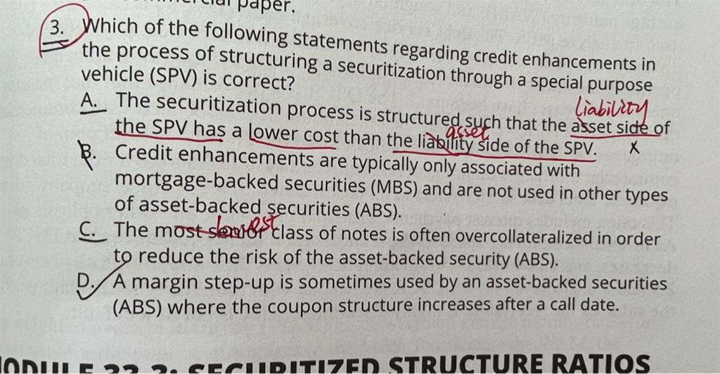 老师,a和c都没太理解,请讲下。另外c,超额抵押难道不是针对整个资产池吗,为什么答案说要改成最低层级才有超额抵押呢?