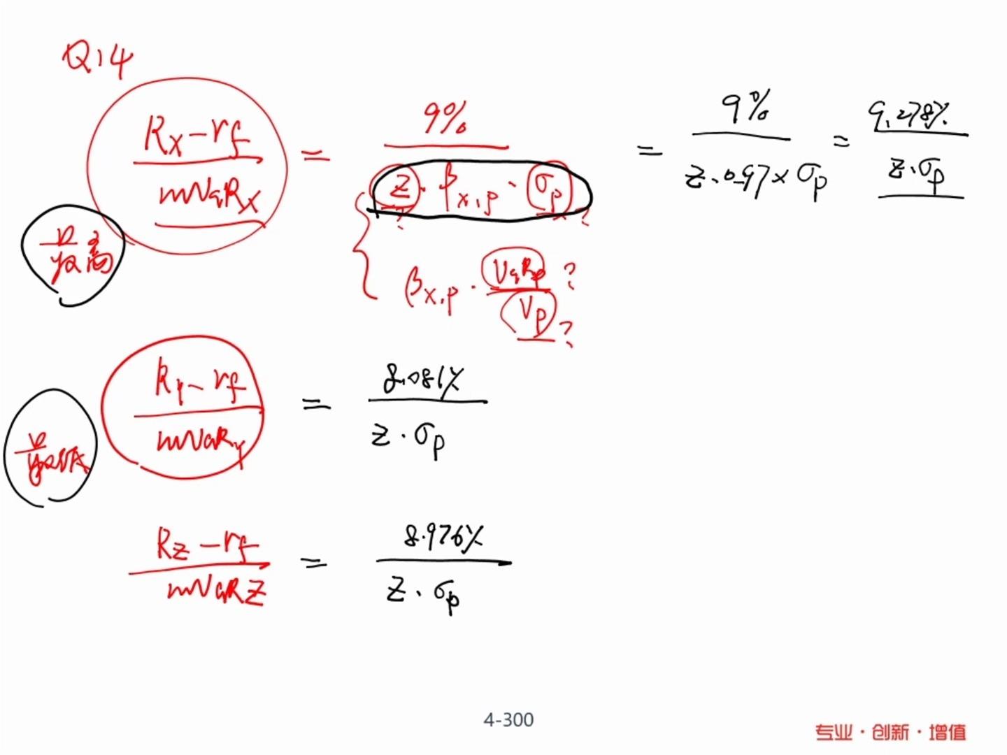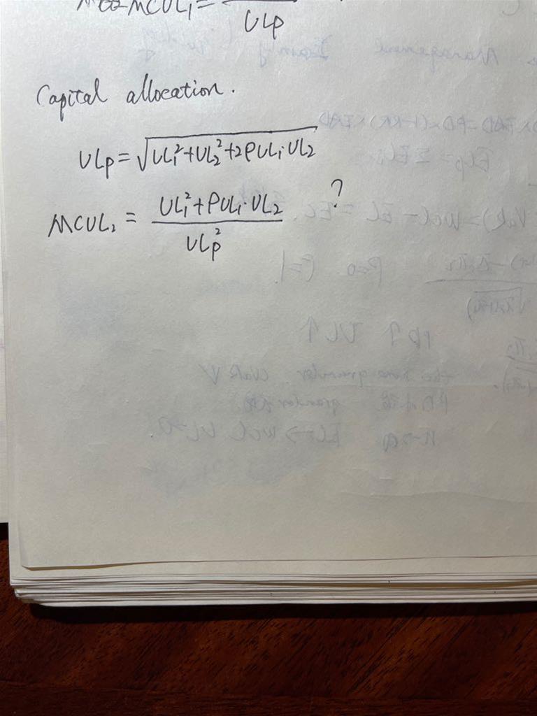 Q2. 请问 老师 %VaRp在加总的时候我们有个公式是 %VaRp^2=%VaR1^2 *w^2 +%VaR2^2 * w^2+..... . (如果不考虑相关系数的话,就是rho=0的状况,那么后面关于相关系数的项就没有了)。但 计算%VaR总还是和权重w相关的不是吗?这道题为何没有用头寸作为权重(比如 第一年就是w=107$/200$)乘进公式里计算呢?感觉不太对。因为不管%VaR,或者是%sigma 都是需要乘以权重一起用的不是吗?