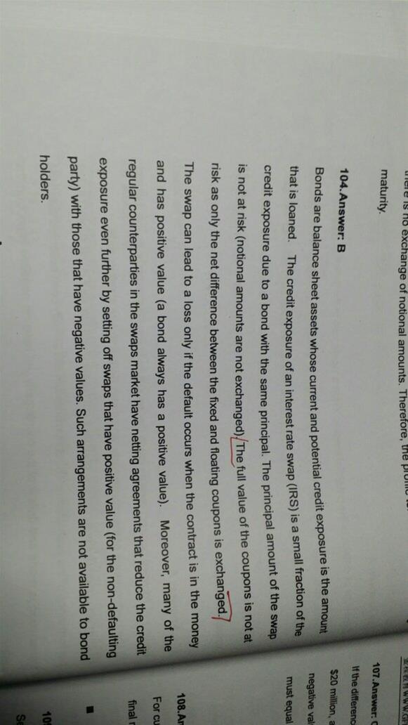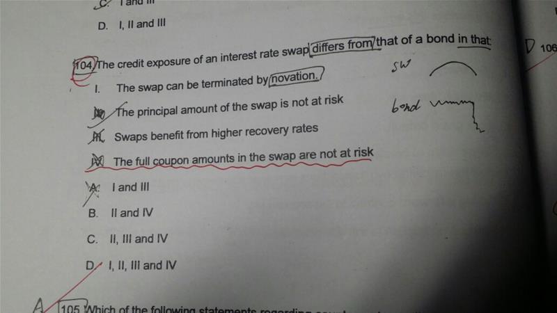 请问题目中第四个为什么正确呀? 答案上说因为netting agreement 的存在可以清算敞口。但并不是每一个利率互换协议的利息都能被完全抵冲的吧。这个怎么理解呀?左题目,右答案