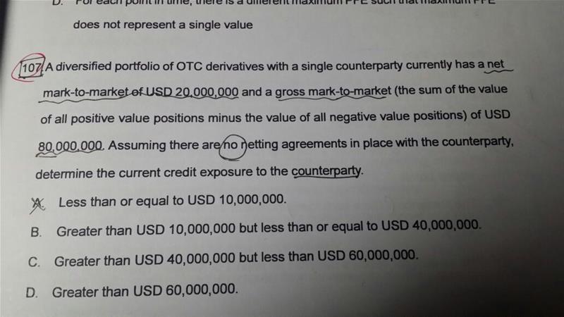 请问一下,net mark-to-market是正头寸减去负头寸 gross mark-to-market是指正头寸加上负头寸吗? 题目中第三行的单词“minus”是打错了吗?应该是“plus”?