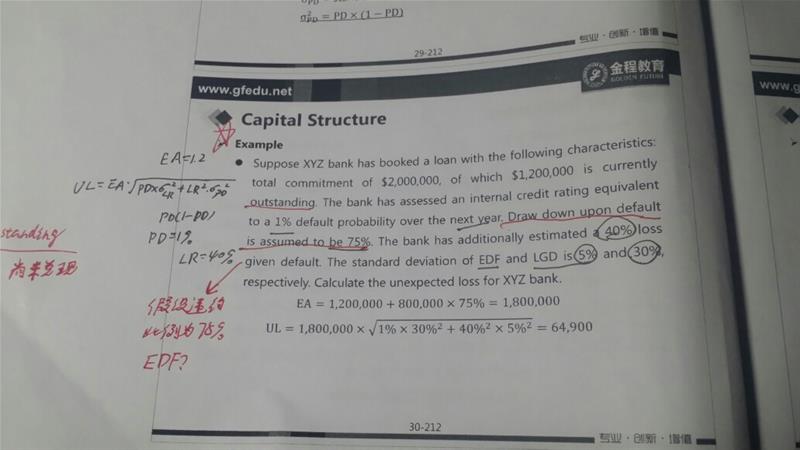 这道例题里面,第四行,draw down upon default is assumed to be 75%.这句话是什么意思。倒数第二行缩写EDF是什么意思呀?