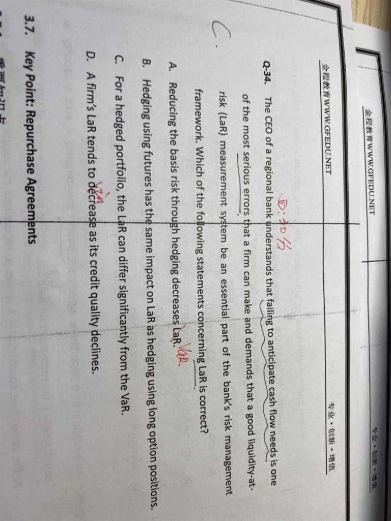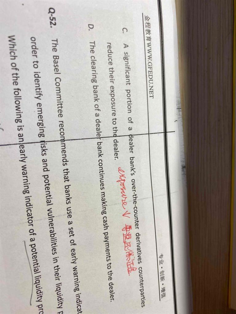 请问老师 C选项counterparty减少交易敞口,说明交易对手现在赚钱然后决定把敞口降低,所以要求dealer交抵押物,所以dealer有流动性风险,是这样的吗?老师这道题是谁挣钱有敞口,我分不清