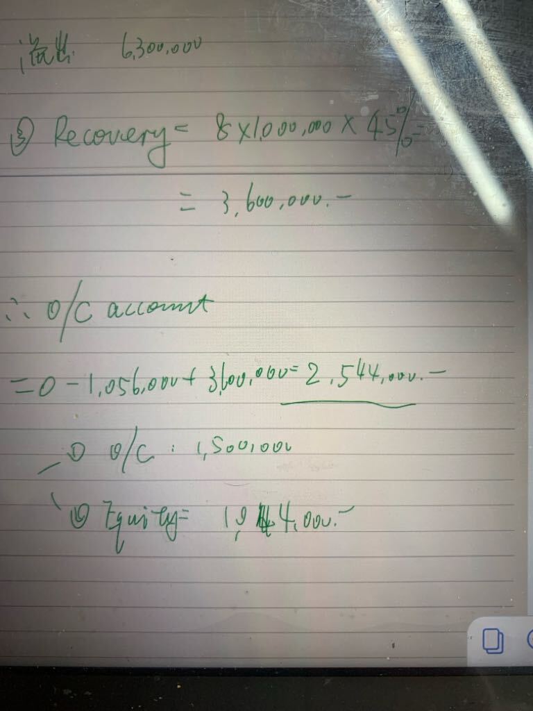 老师,算出来o/c account是2544000,不是应该一部分进入o/c account 150万,一部分分配给equity吗?最后o/c account的价值不应该是150万吗