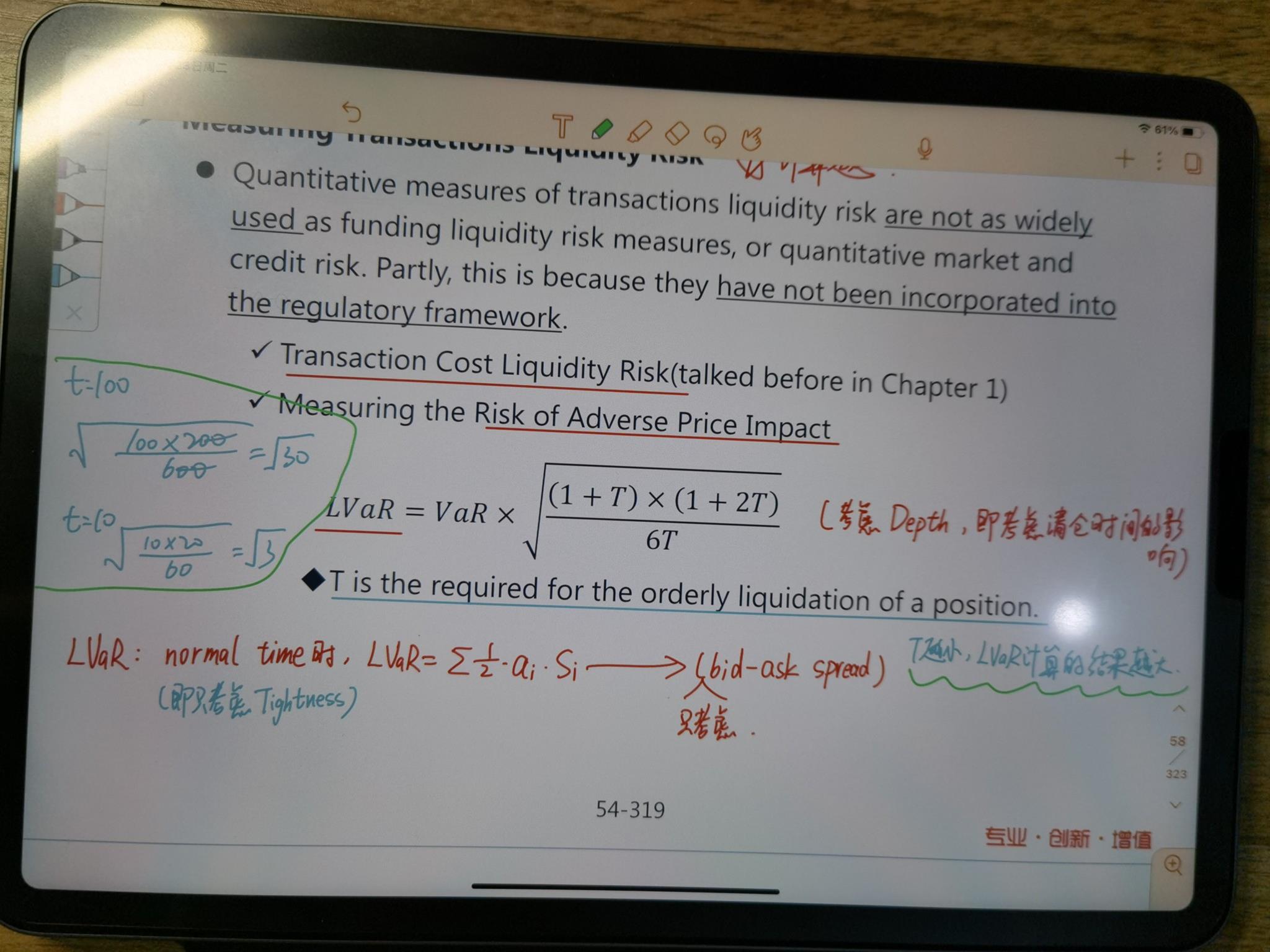 老师说,t越小,流动性风险越大,计算出的LVaR越大。但是t等于10时,结果大约为根号3,t等于100时,结果大约为根号30,明显跟老师的结论不符!