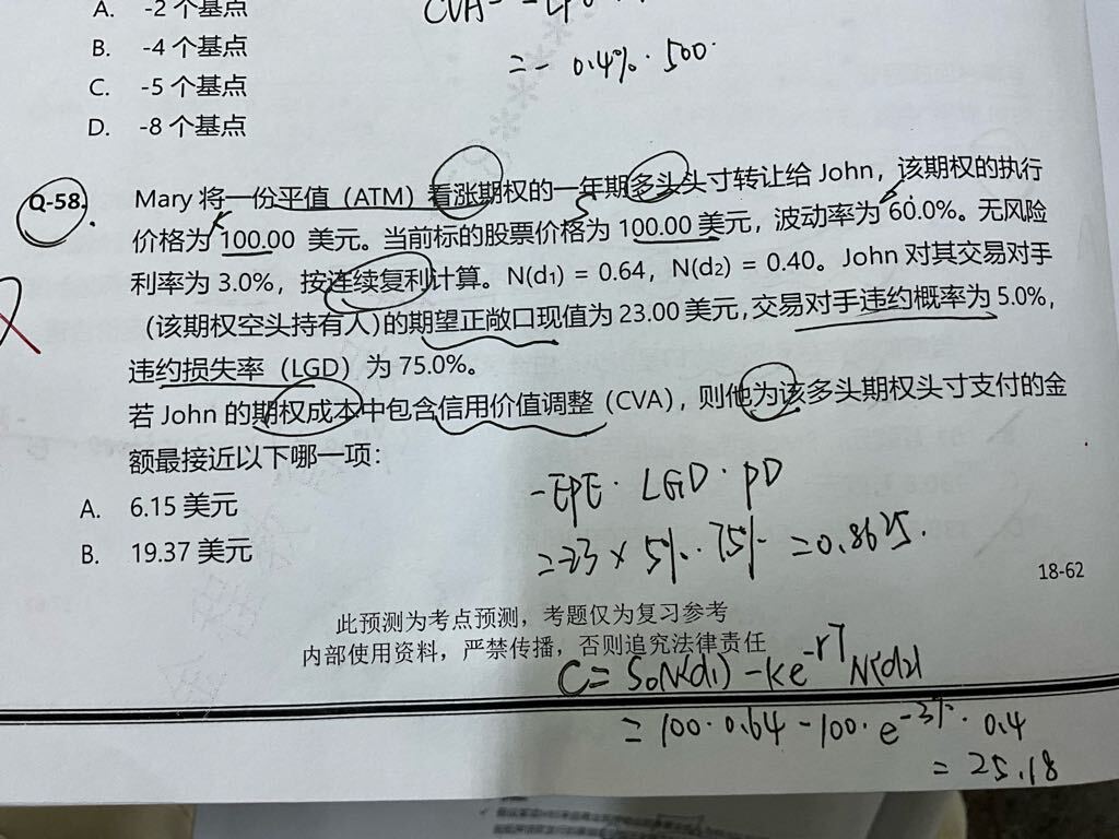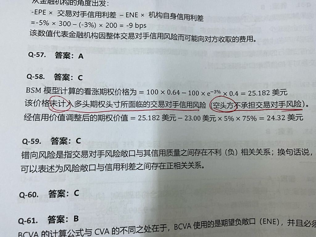 能否解析下58题为什么要扣减信用价值调整而不是加上呢?