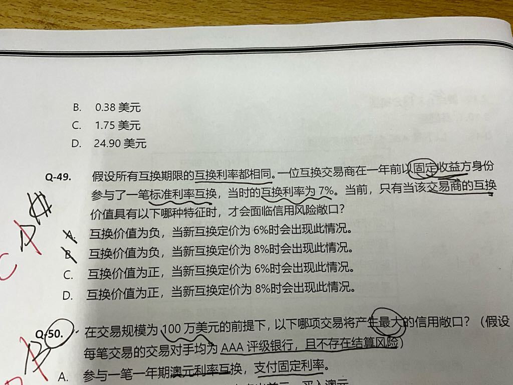 能解析下第50题结算风险的定义以及对该题的影响吗? 若该题没有不存在结算风险的假设是不是应该选B呢?