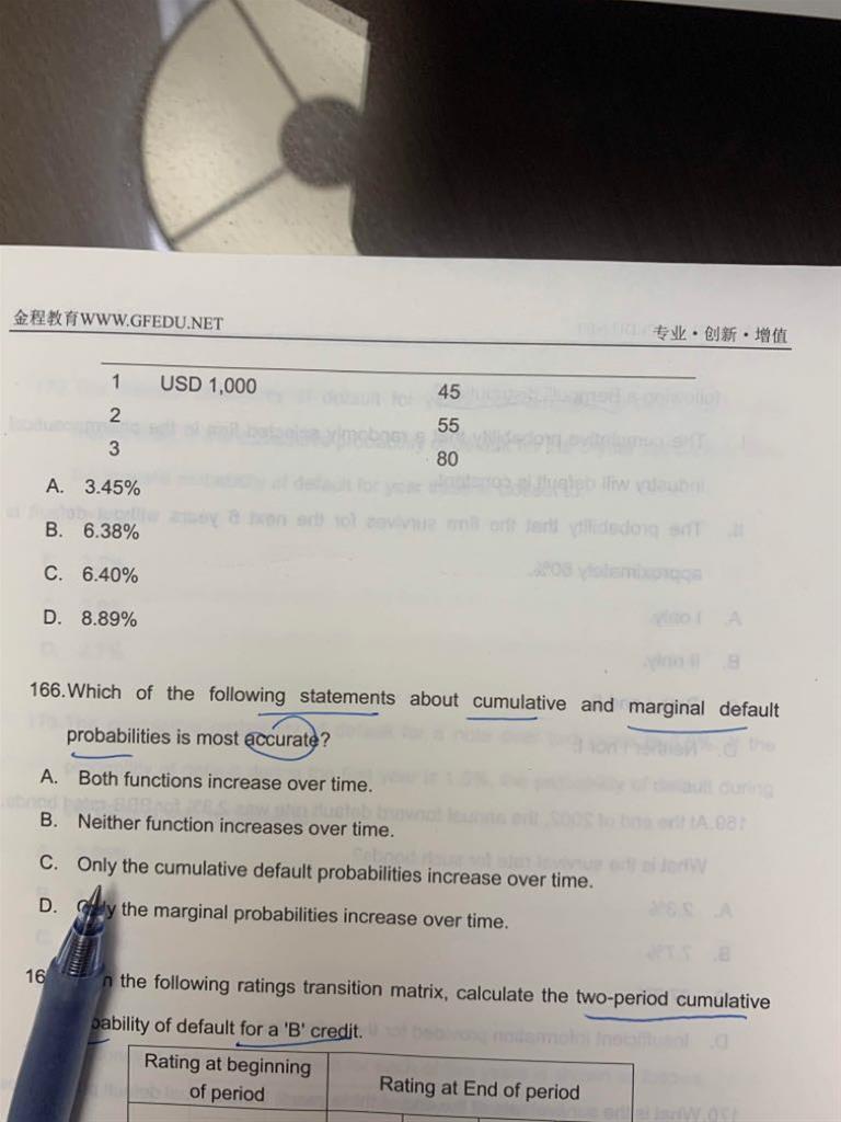 不好意思老师,这道题真的没听懂。 Which of the following aggregation methodologies is characterized by great difficulty in validating parameterization and building a joint distribution? A Copulas B Constant diversification C Variance-covariance matrix D Full modeling/Simulation 这道题问的是most(great) difficult的,这里面的四个选项请问为什么是copulas最难呢? 麻烦老师可以把四个都讲一下吗?在我的观点看来是D最难呀,因为simulation比如蒙特卡罗模拟 没有见过比它更难的了。请问题眼不应该是difficulty吗?看视频讲解还是没懂。请老师指教啦~谢谢!!