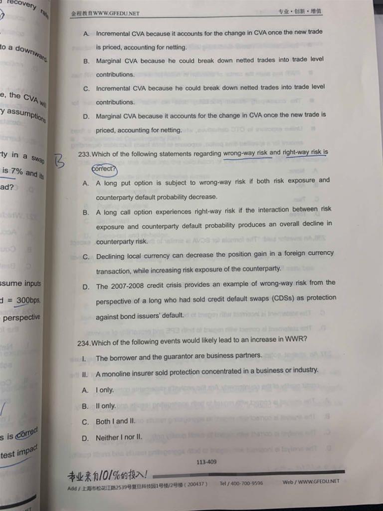 习题233:老师好、这题a选项,long put option 因为pd上升ea上升,所以它是wrong way risk 但是为什么答案里说a的描述是right way risk 呢,right way risk 的pd和ea不是应该是反向移动的吗