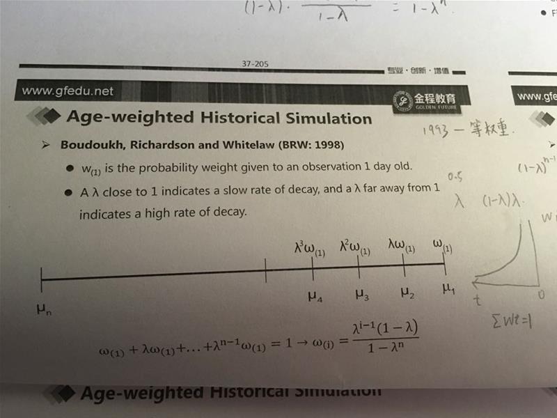 时间加权的历史模拟实操是怎么做的呢?算出来的权数代替了n分之一以后怎么做呢,参数法算var时也没用到n分之一呀关键是