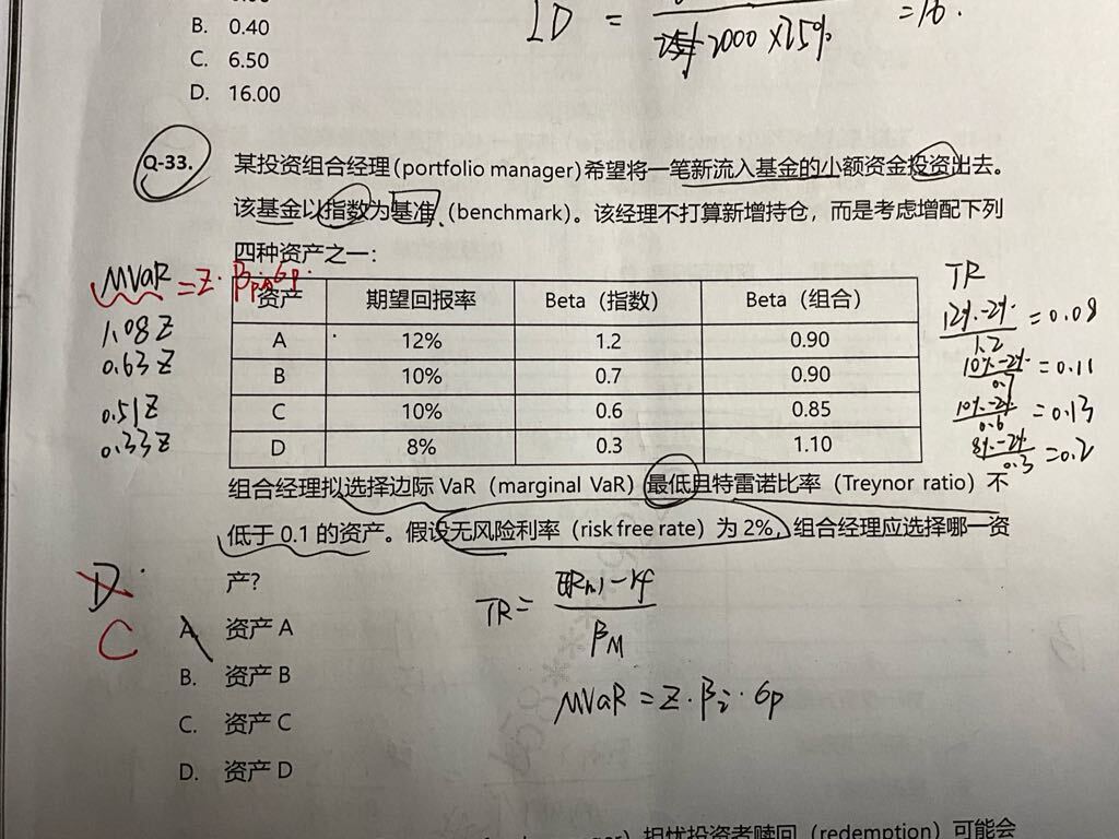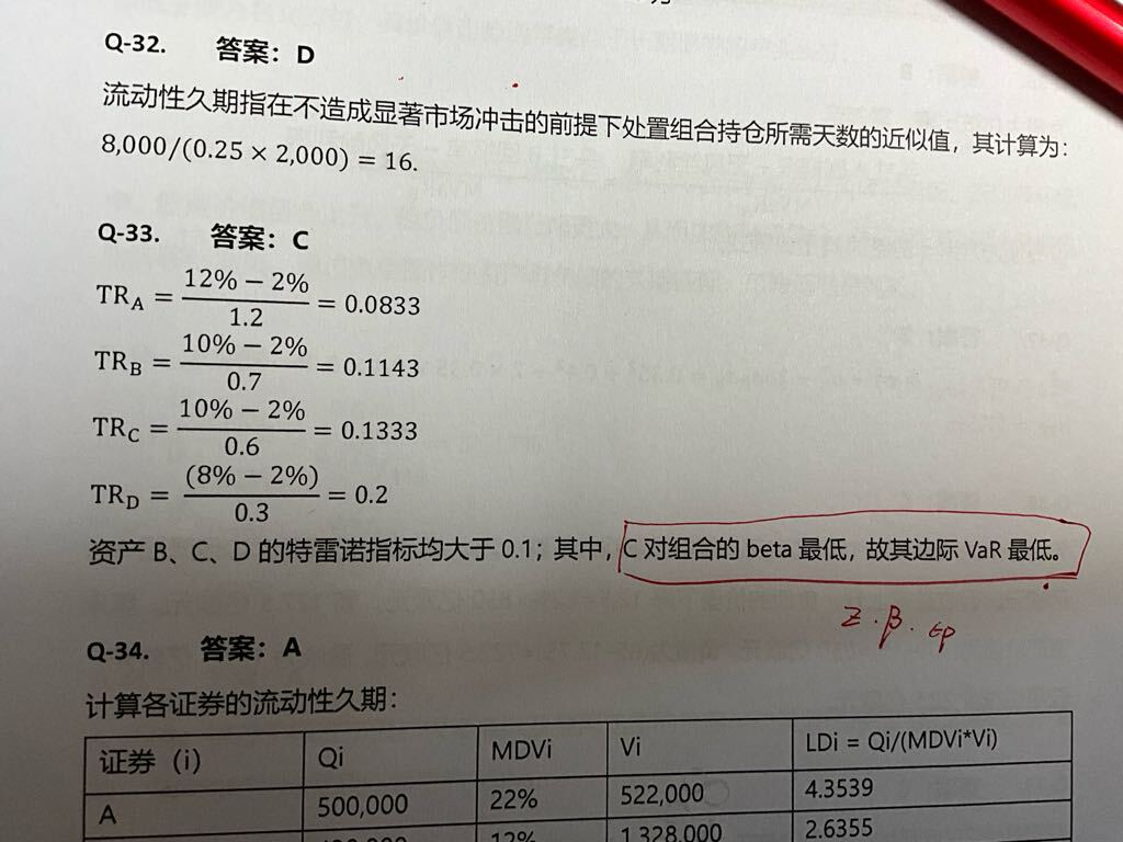 为什么33题TR除的是组合的beta,而边际VaR用的是指数的beta呢?