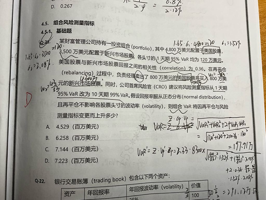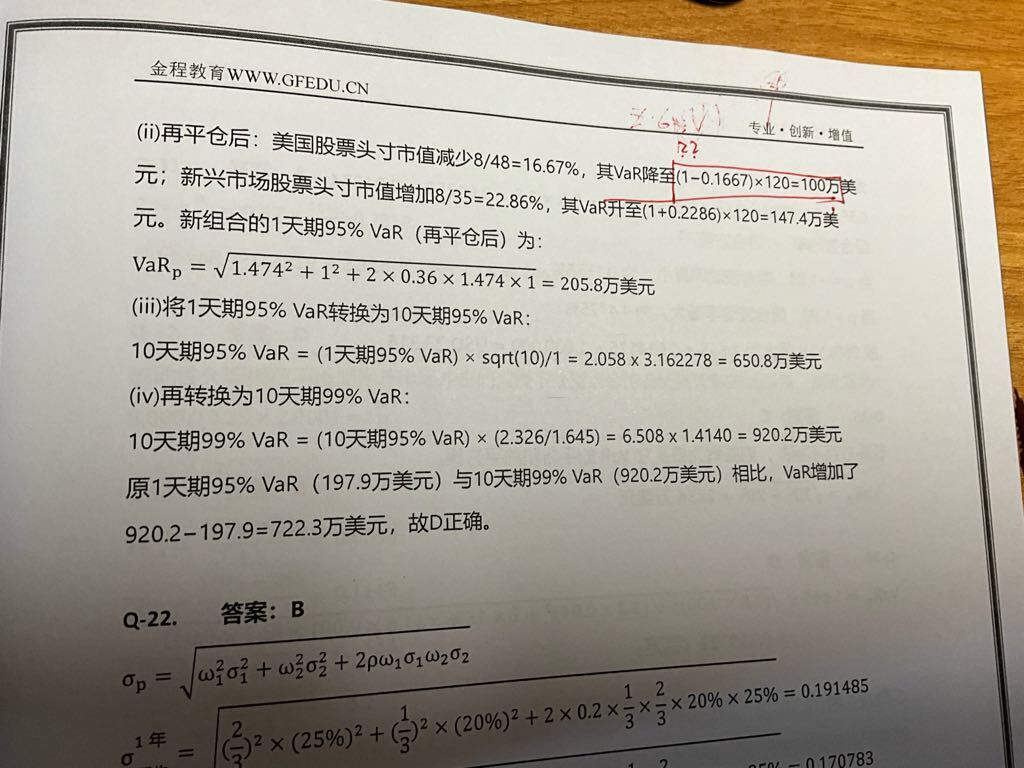 想问下21题中要是再平仓影响各股票头寸的波动率的话,是不是权重变化后个体的VaR就不是这样计算了?