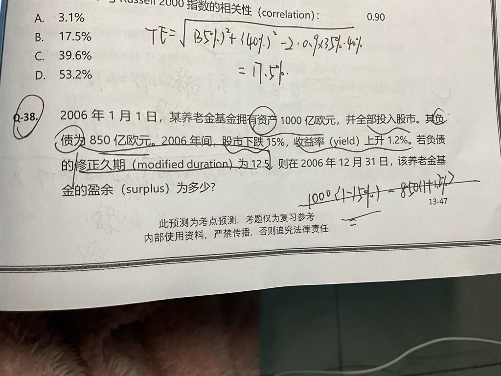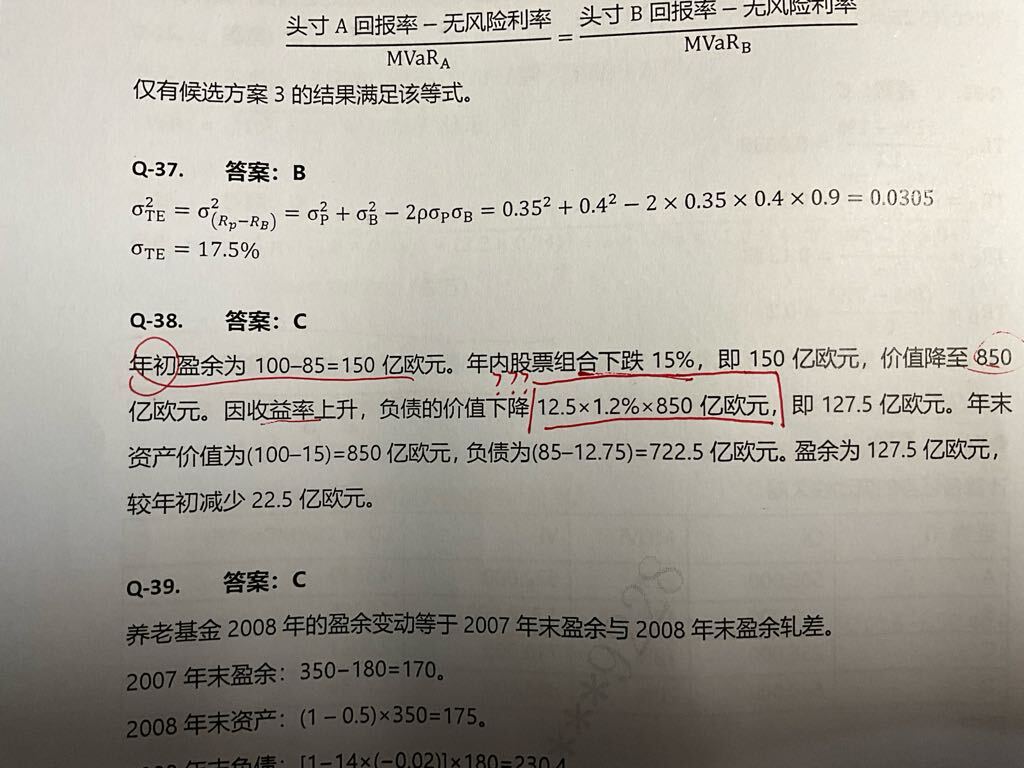 1.能讲解下第38题的负债减少为什么要这么算吗? 2.修正久期的计算公式是什么呢? 3.修正久期计算损益的公式是什么?