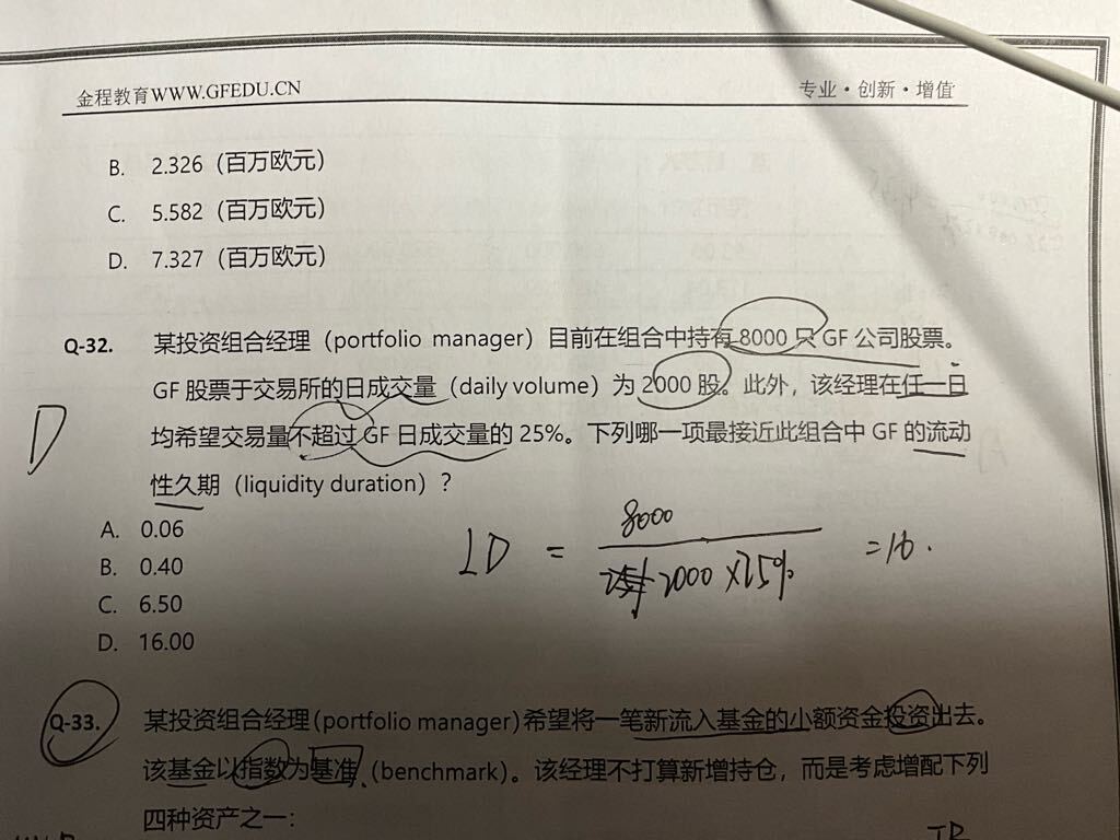 流动性久期不是要求每天交易的最大比例为15%吗?这个题目为什么要用25%