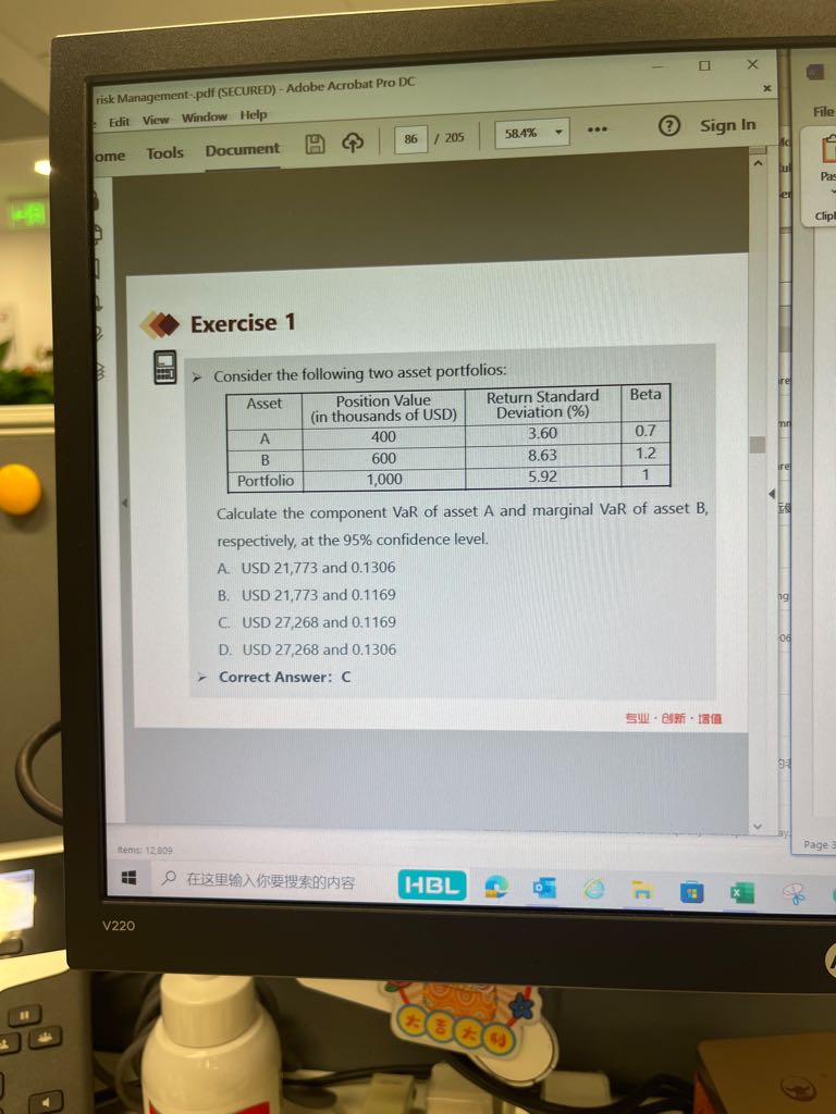 老师好,这道题目里面求解component VaRA为什么算出来的结果和答案不一样。谢谢。