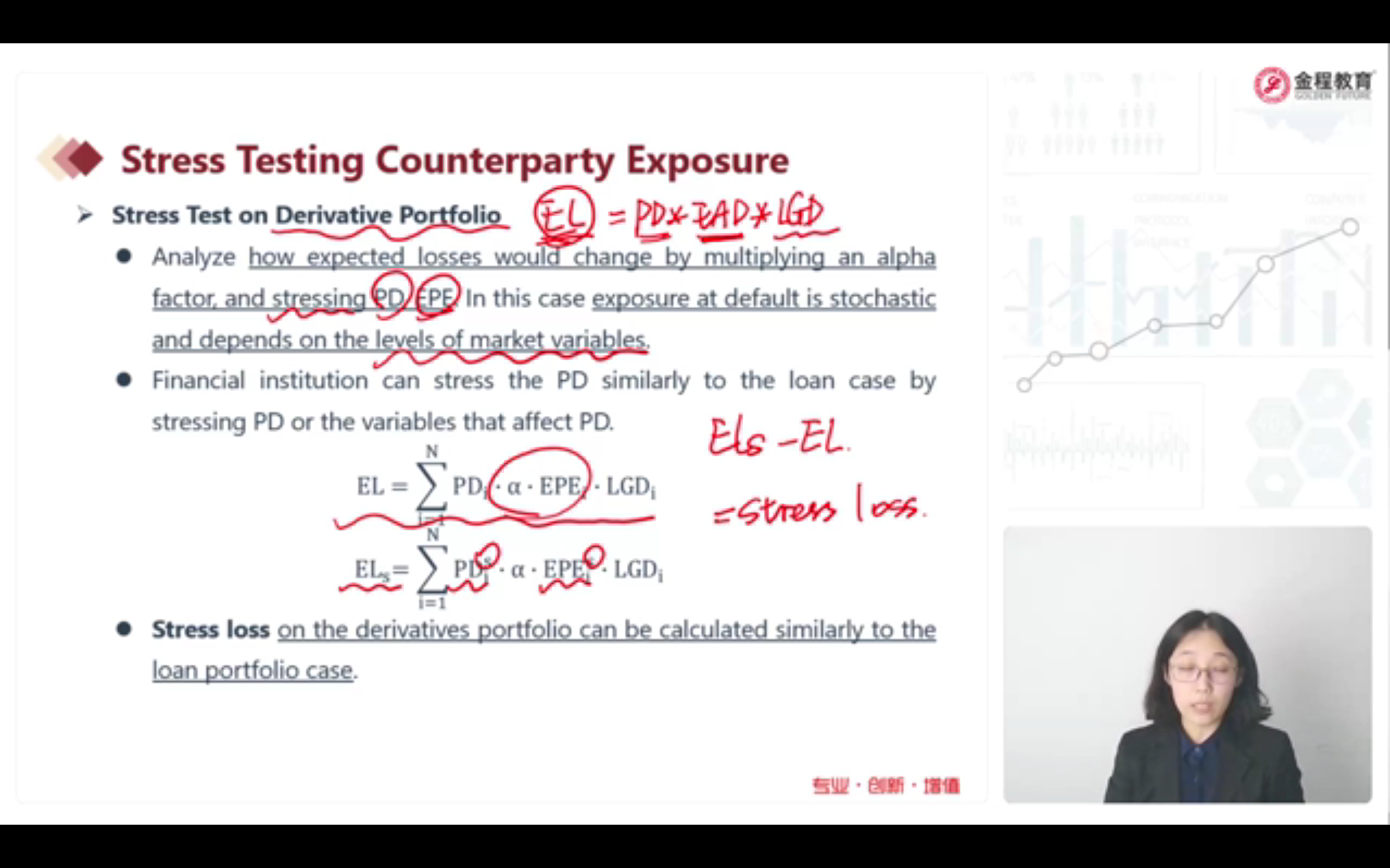 老师说这个方法计算的衍生品的压力损失并不准确,因为衍生品更关注未来的变动,不关心现在的预期损失。但是预期损失不也是预测值,即未来的值嘛?现在的预期损失,不是基于现在这个节点去预测未来的情况吗?这和老师说的衍生品关注的未来的变动有什么区别呢?