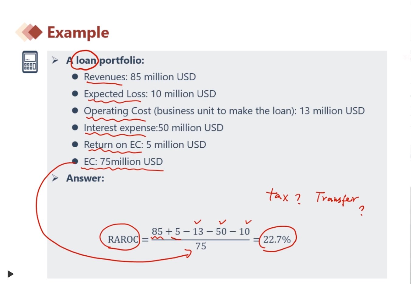 请问算RAR的时候为什么需要用expected revenues + return on EC?比如用EC去做投资所获得的钱是revenue,可是如果去做投资的话如何还可以拿到risk free return,两者难道不是只能取其一来算作EC带来的利润吗?